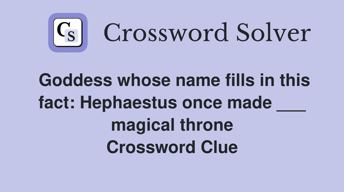 Goddess whose name fills in this fact: Hephaestus once made magical