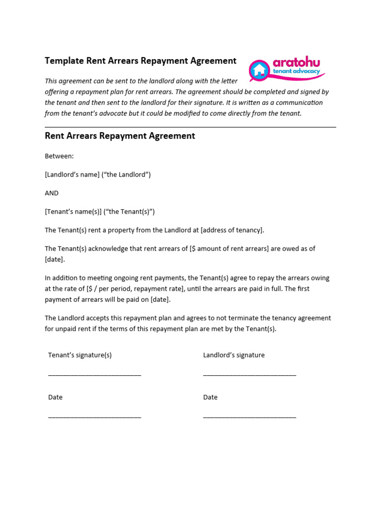 ARREARS REPAYMENT AGREEMENT (Current Tenant/Member) Doc Template