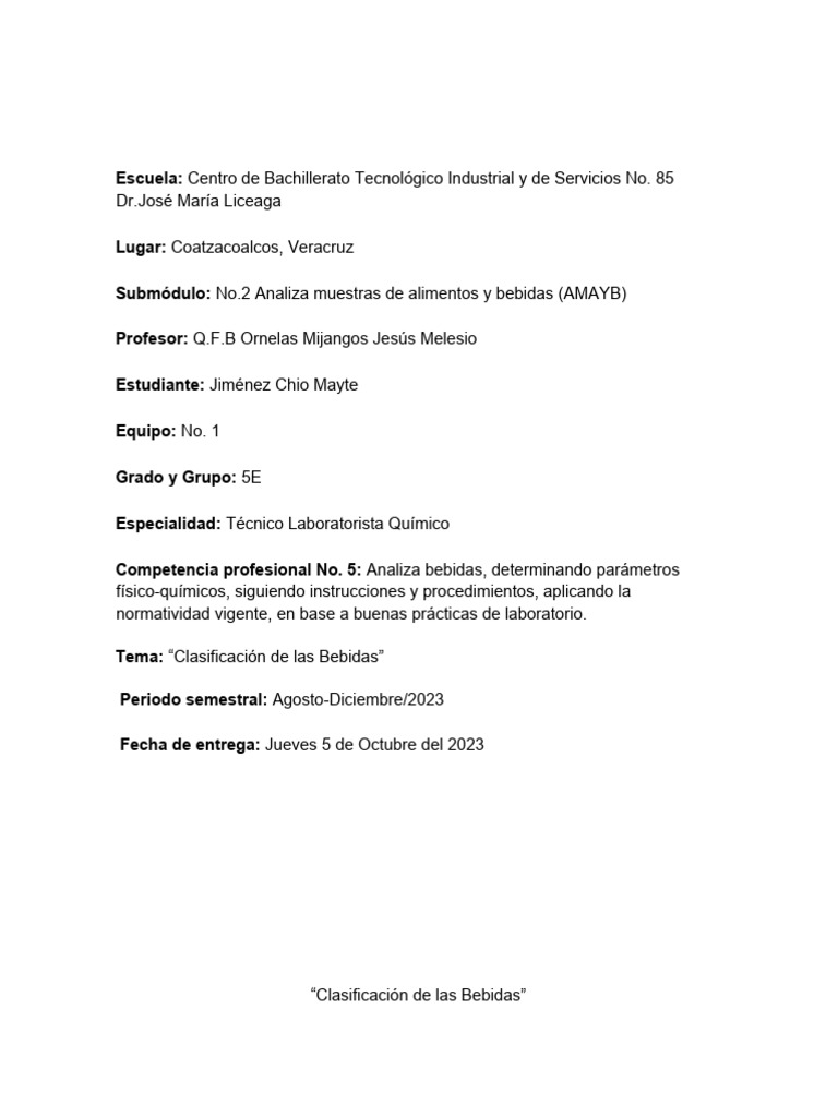 Clasificación de Bebidas y Parámetros PDF Bebida Bebidas alcohólicas