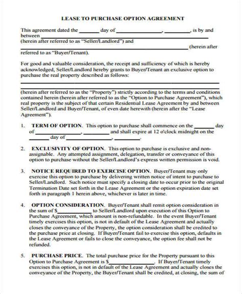 FREE 10 Option to Purchase Agreement Samples in MS Word Apple Pages