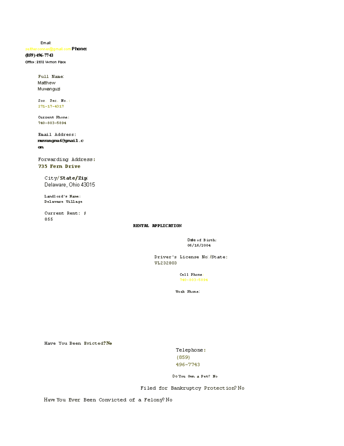 Rental Application Email: seitherconner gmail Phone: ( 859 ) 496
