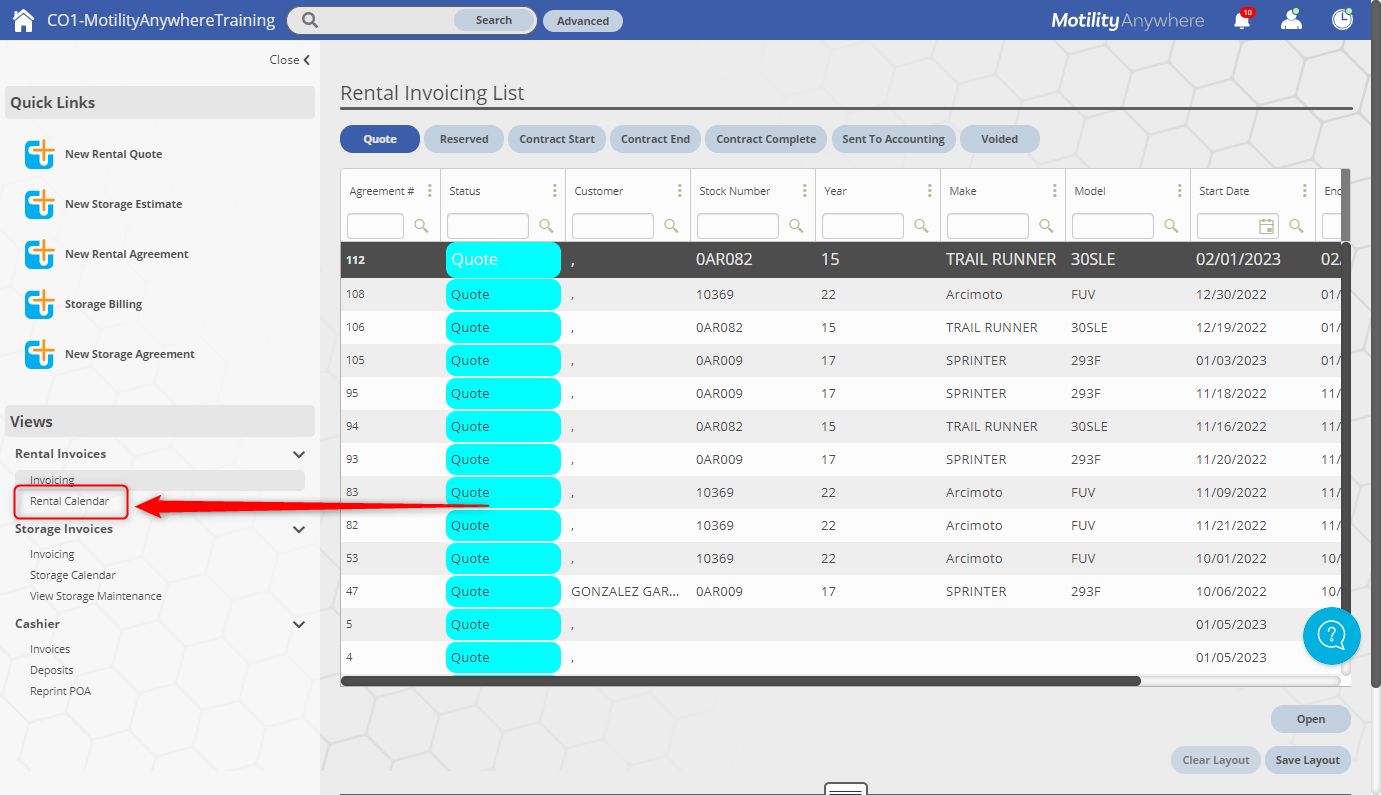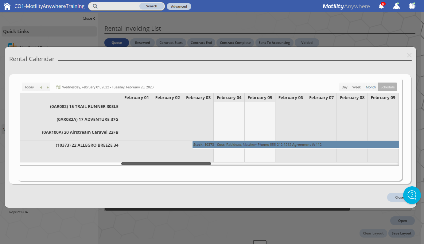 Rental Calendar Motility Software Solutions