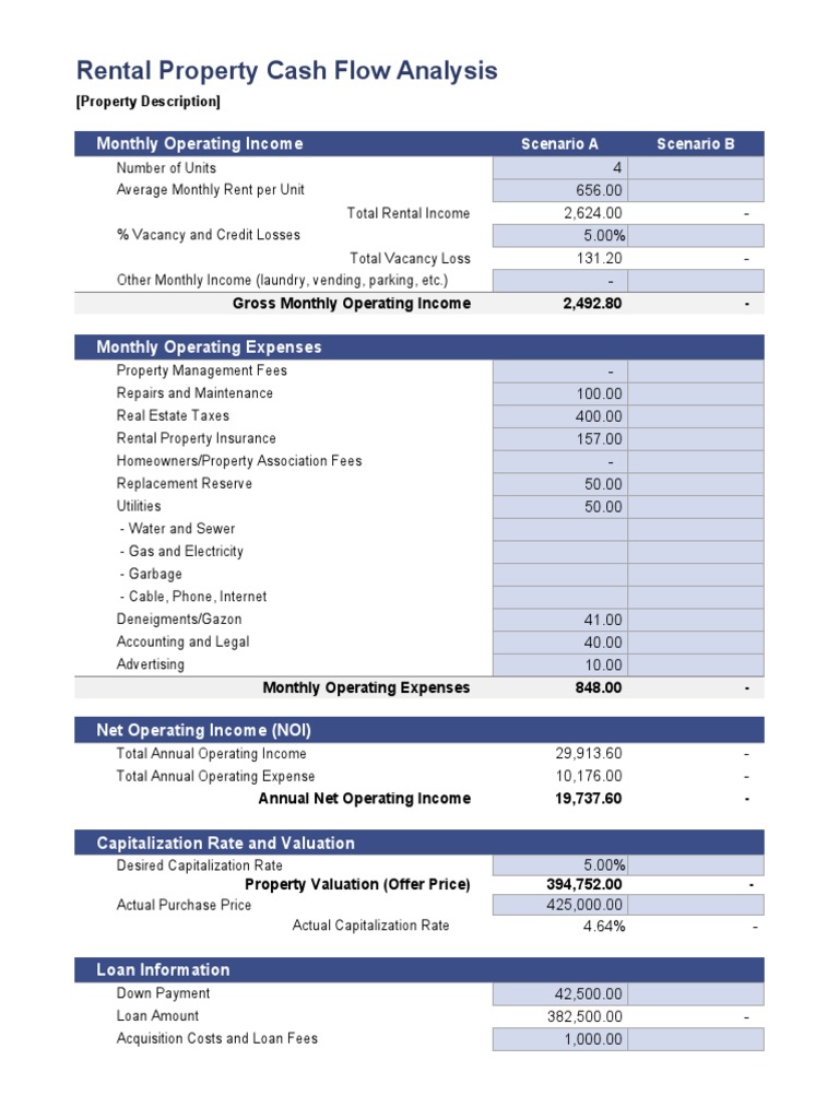 Free Real Estate Rental Property Cash Flow Analysis Template to Edit Online
