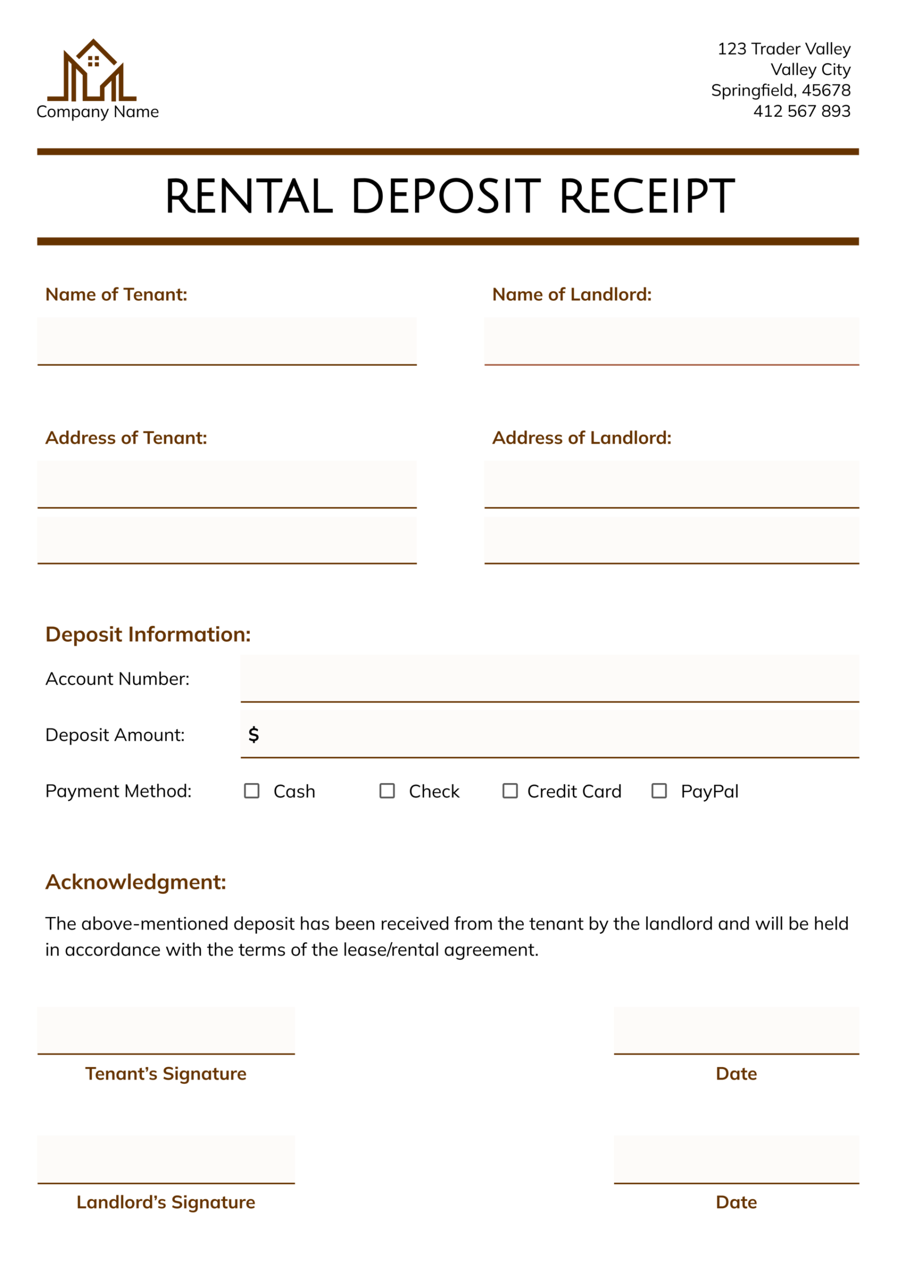 Here are some of the images for Rental Deposit Receipt Template that we found in our website database.