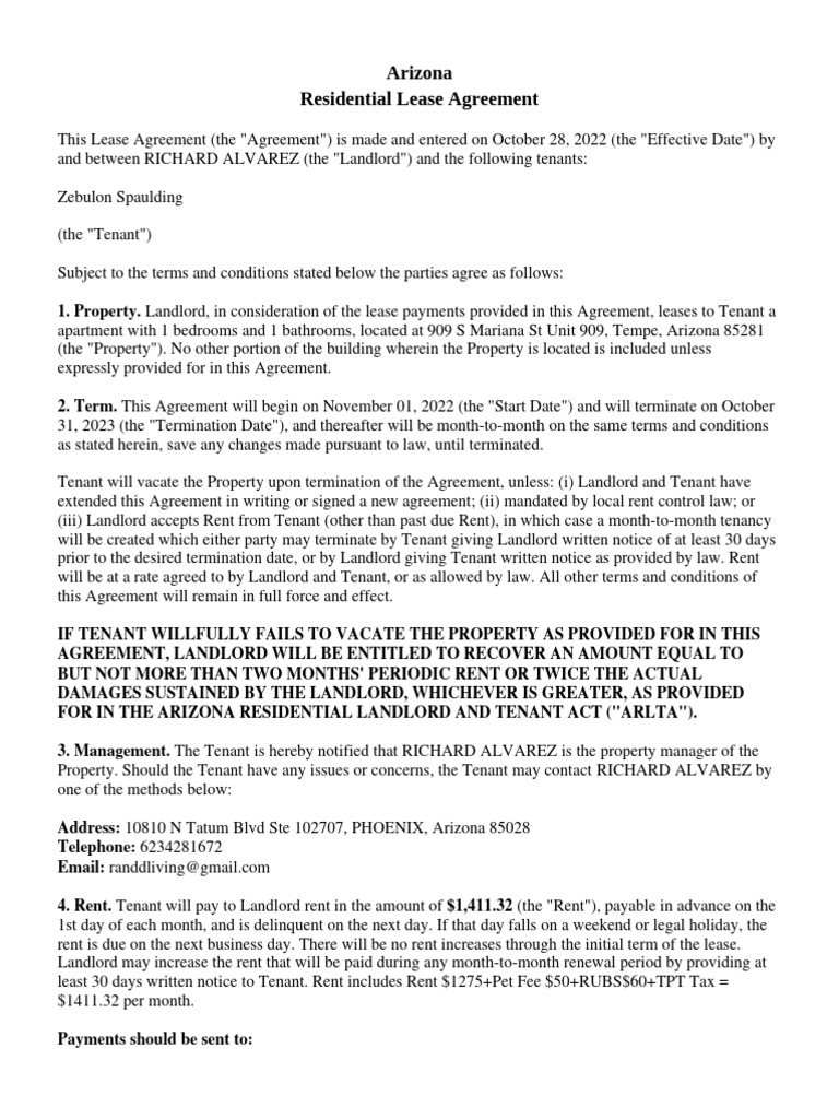 Free Lease Agreement Template Arizona