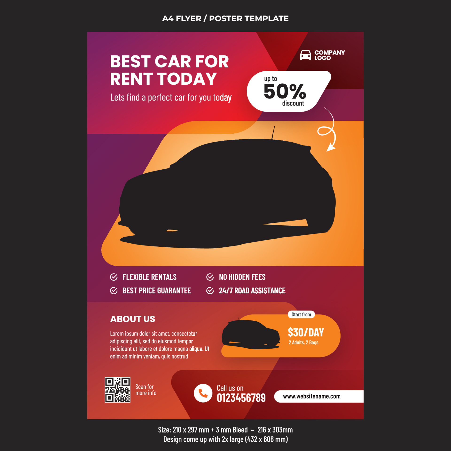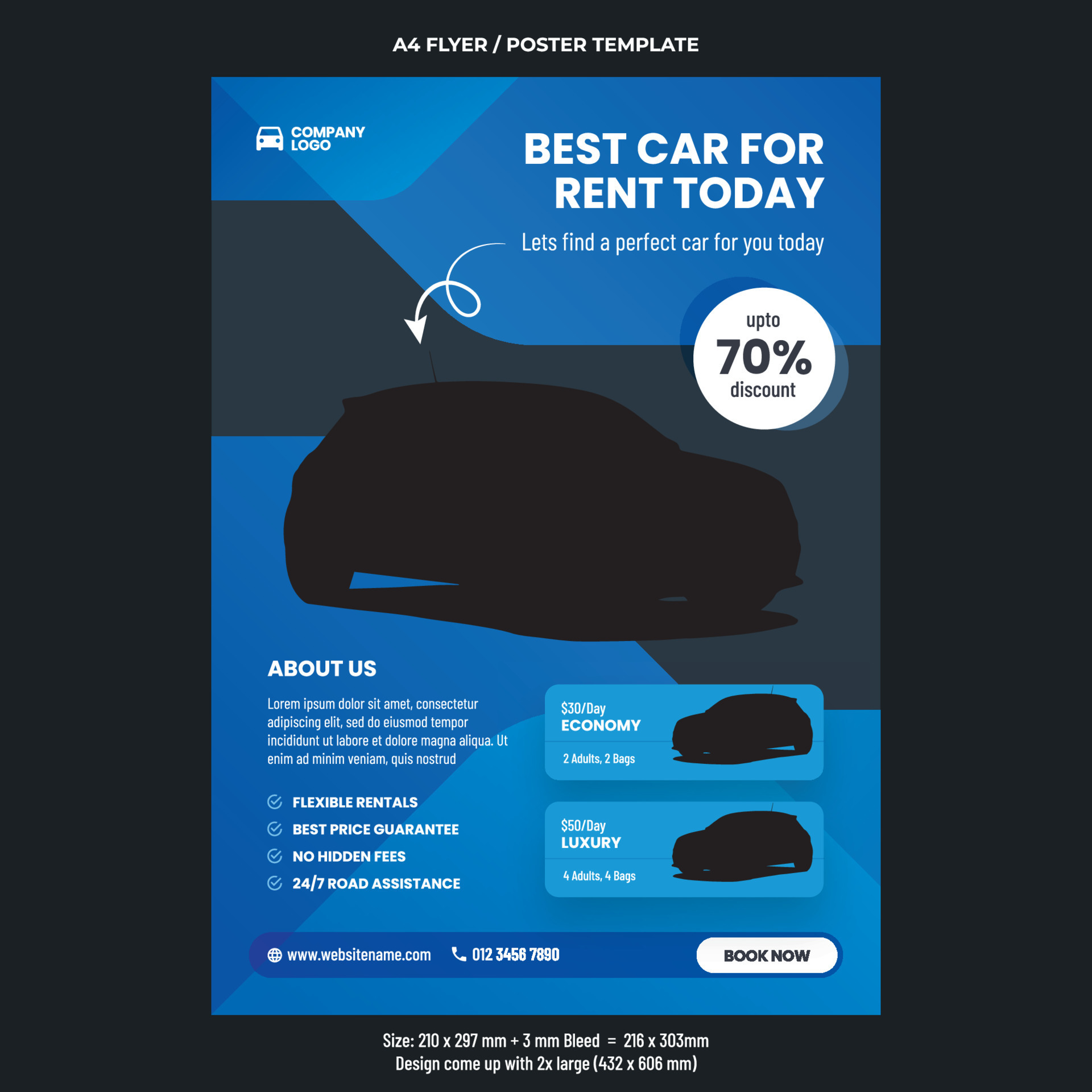 Car rental offer and deals A4 or poster flyer template design 15083822