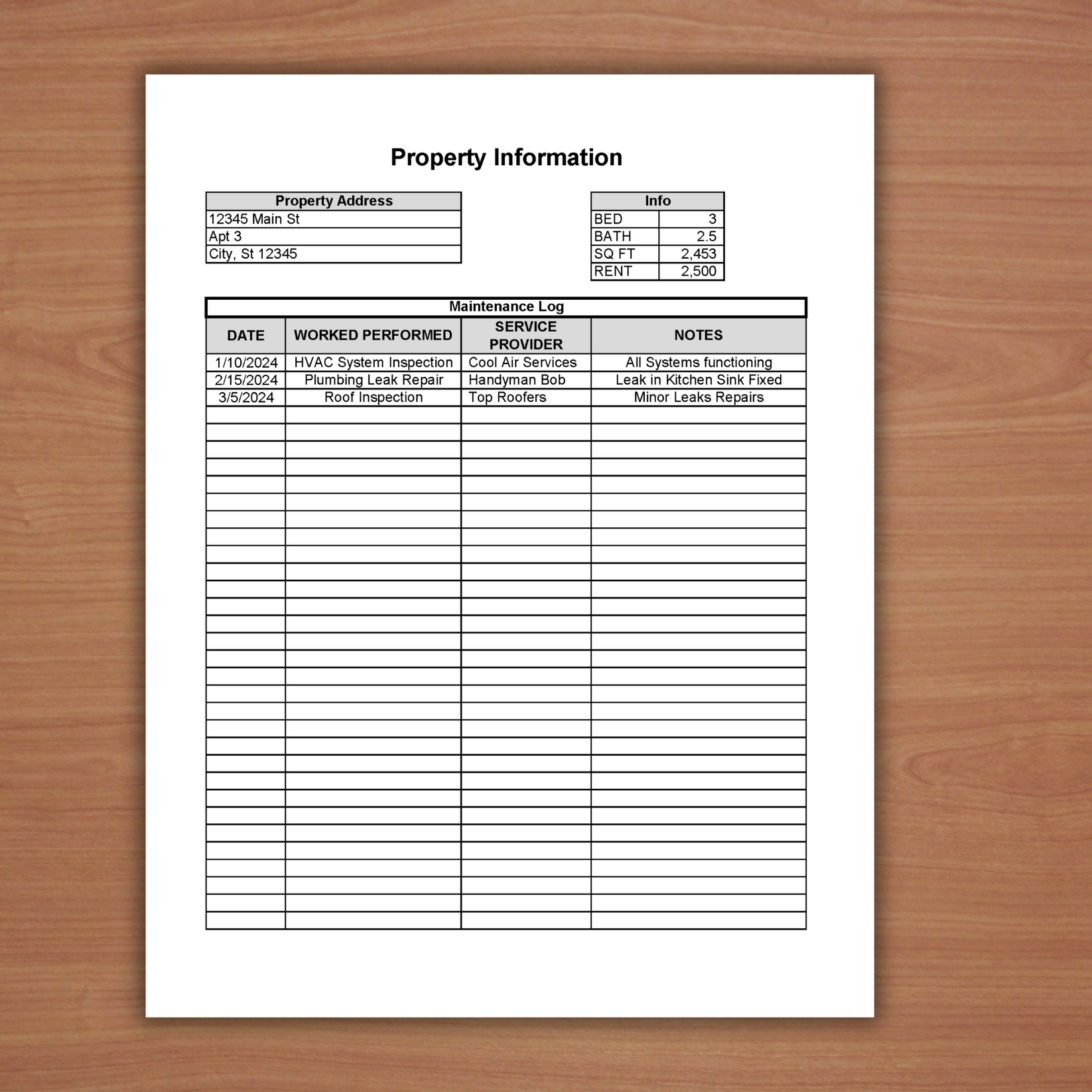 Rental Property Maintenance Log Template