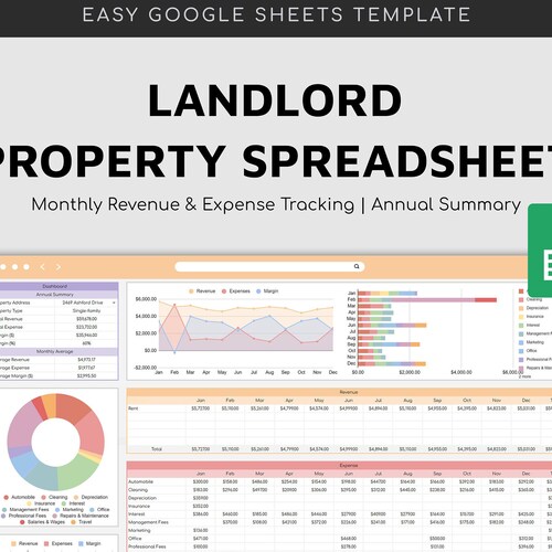 Landlord Rental Property Spreadsheet Template Google Sheets Etsy