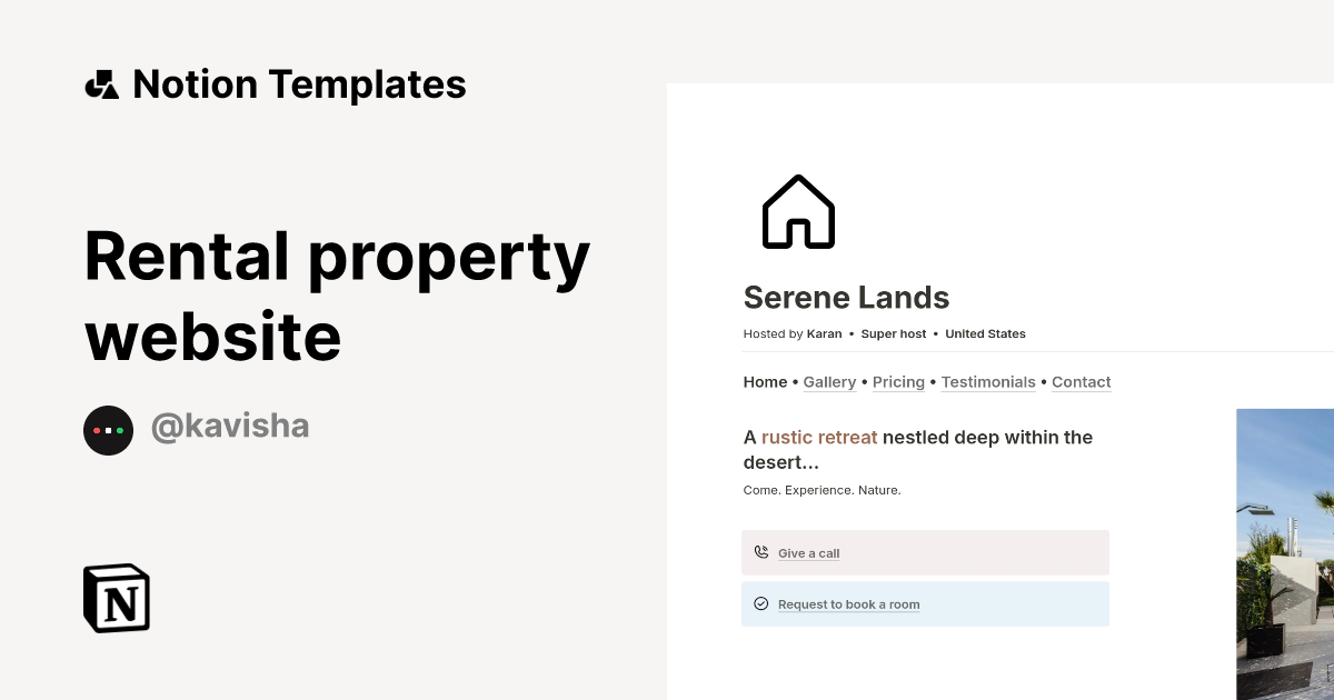Rental property website Template by Kavisha Notion Marketplace