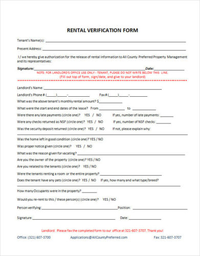 29 Rental Verification Forms (for Landlord or Tenant) TemplateArchive