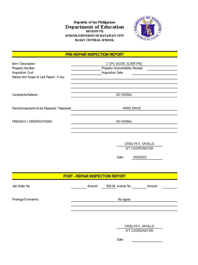 Repair report Templates Archives Free Report Templates