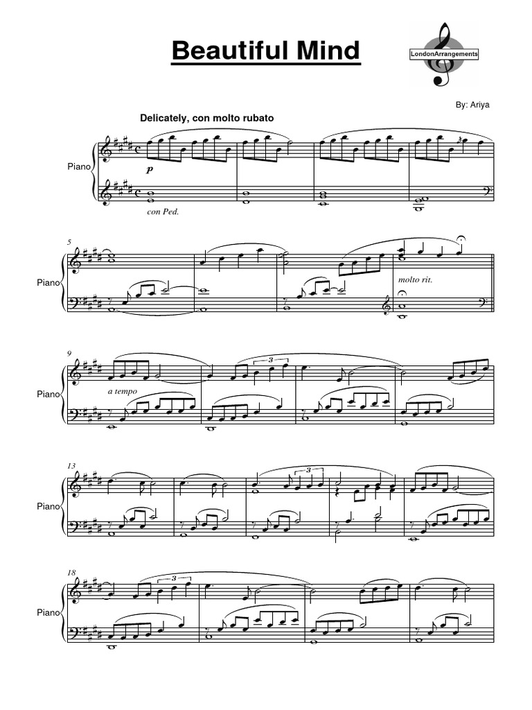 Piano Sheet Music: Beautiful Mind PDF Musical Forms Elements Of Music