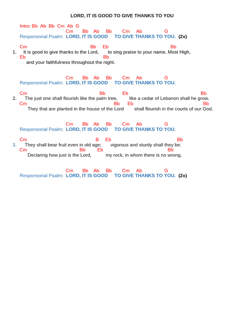 Lord It Is Good To Give Thanks To You PDF