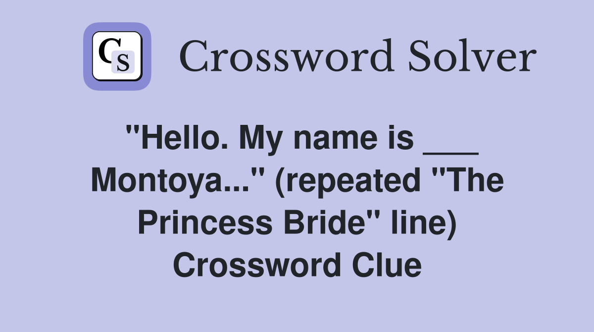 quot Hello My name is Montoya quot (repeated quot The Princess Bride quot line