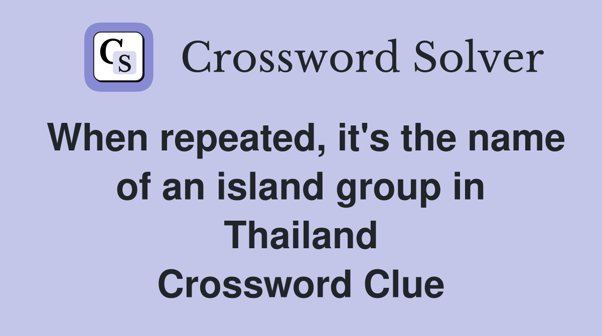 When repeated it #39 s the name of an island group in Thailand Crossword
