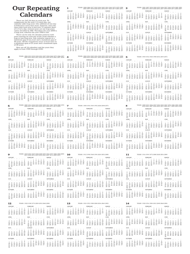 Repeating Calendar Years: Understanding the Pattern