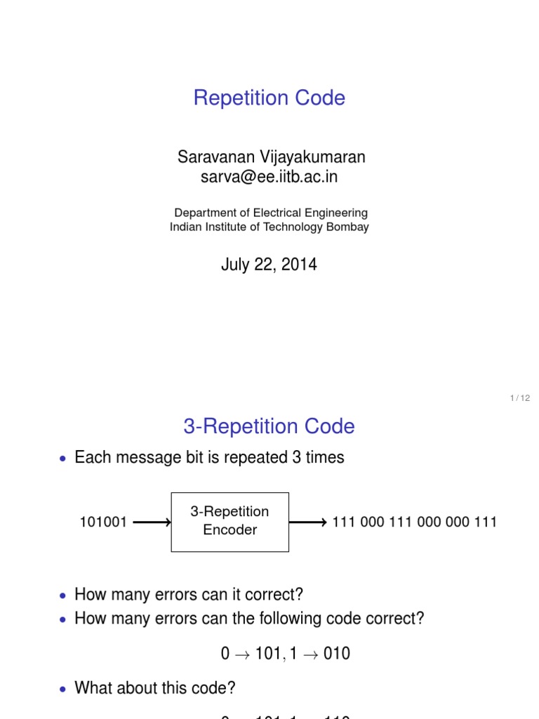 Repetition Code PDF Computer Data Encodings
