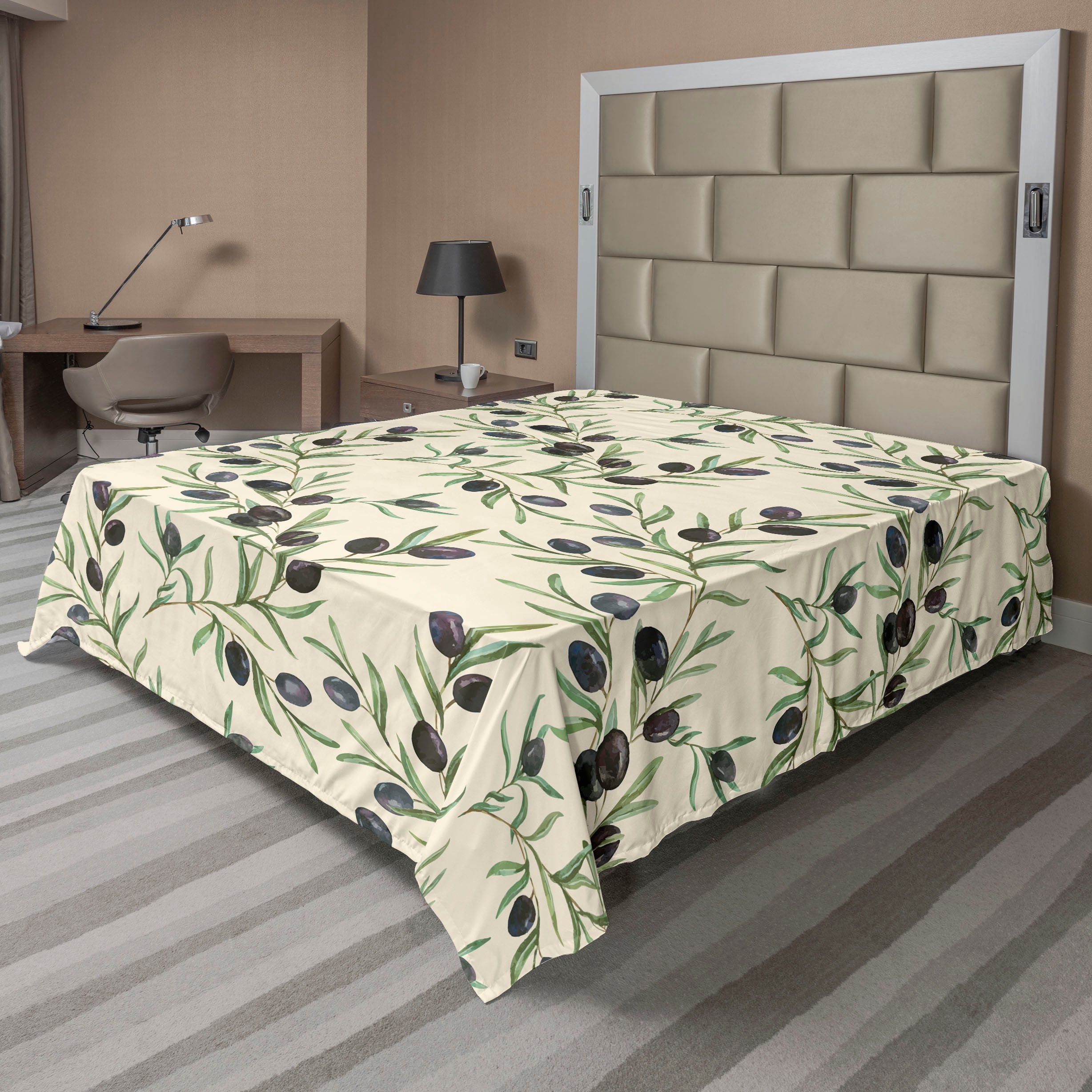 Nature Flat Sheet Watercolor Style Repetitive Olives and Leaves