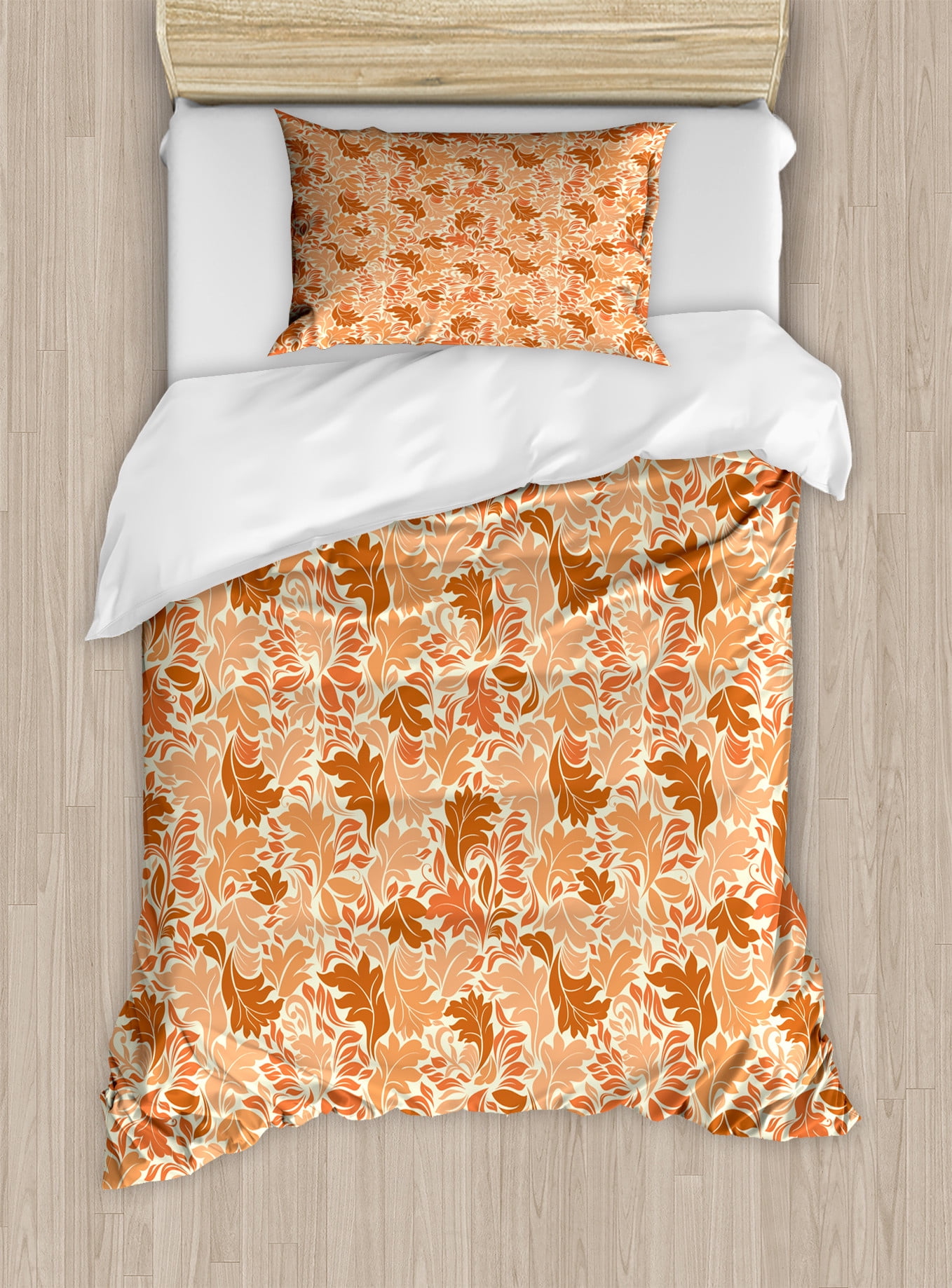 Vintage Autumn Duvet Cover Set Depiction of Repetitive Curved Leaves