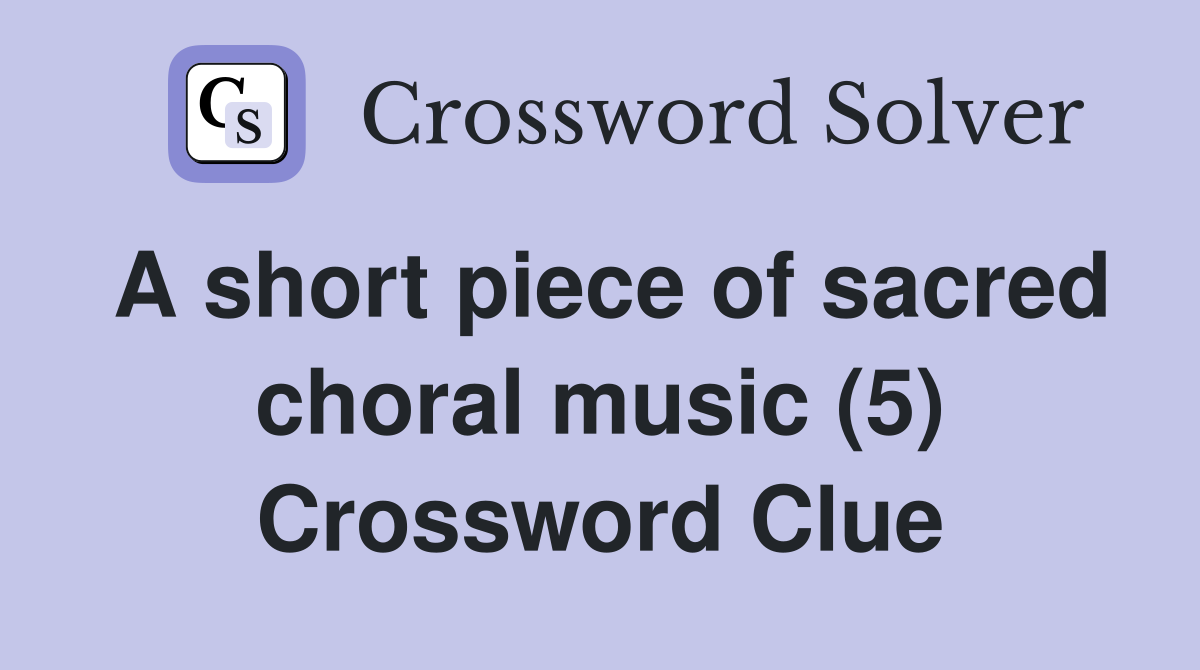 A short piece of sacred choral music (5) Crossword Clue Answers