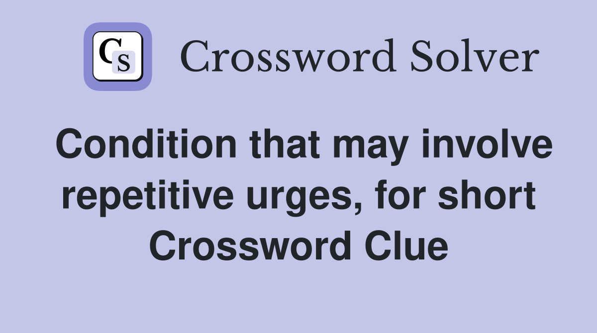 Condition that may involve repetitive urges for short Crossword Clue