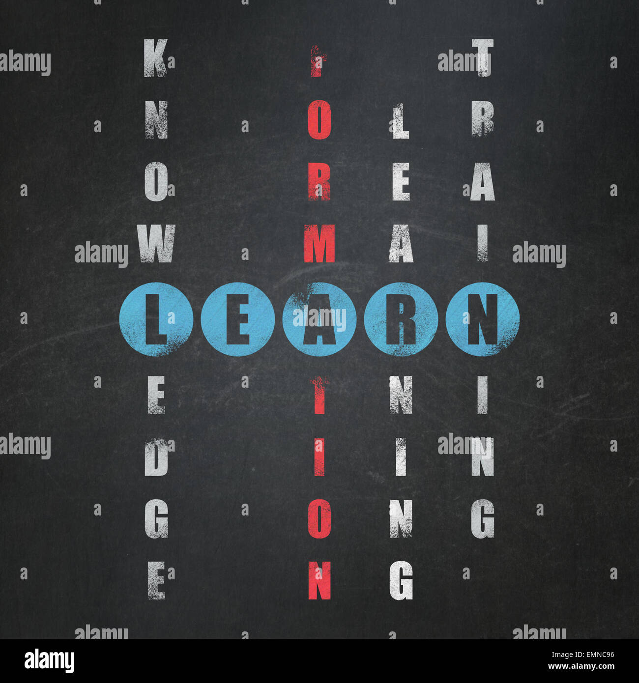 learn lead crossword written by hand isolated on blackboard Stock