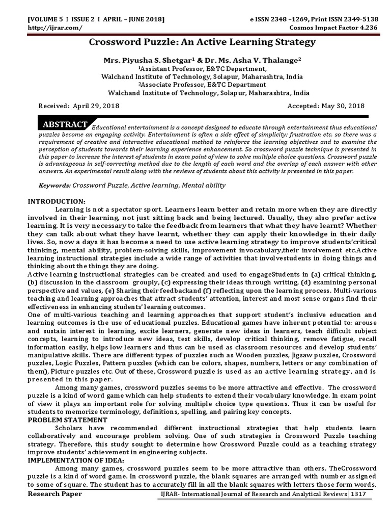 Crossword Puzzle As A Learning Strategy PDF Learning Teaching Method