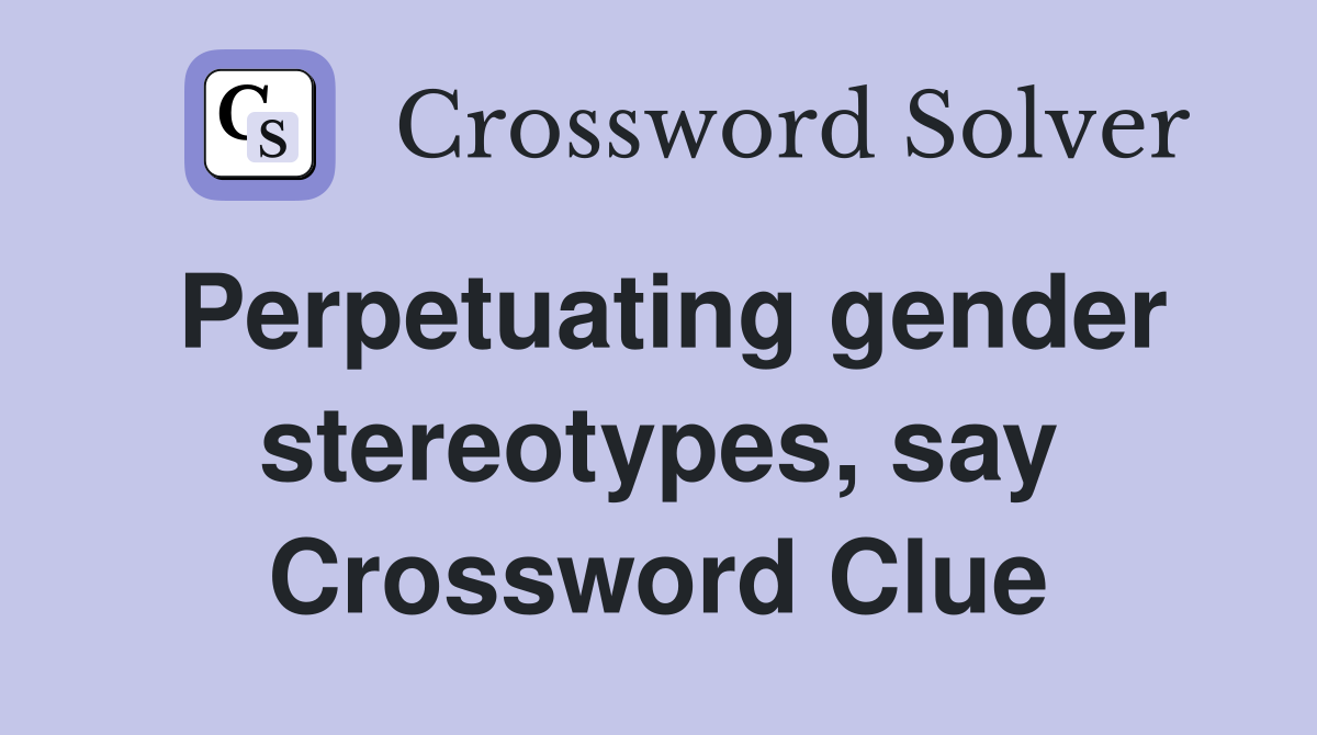 Perpetuating gender stereotypes say Crossword Clue Answers