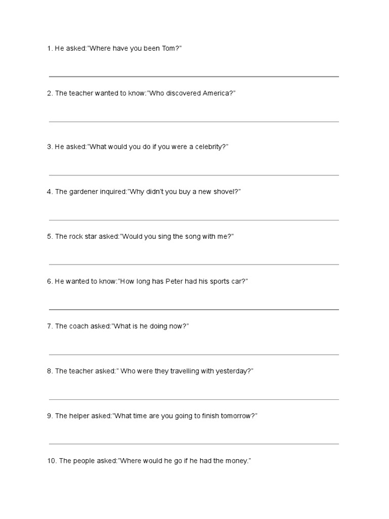 Reported Question Worksheets: Exercises with Answer Key (PDF) • 7ESL