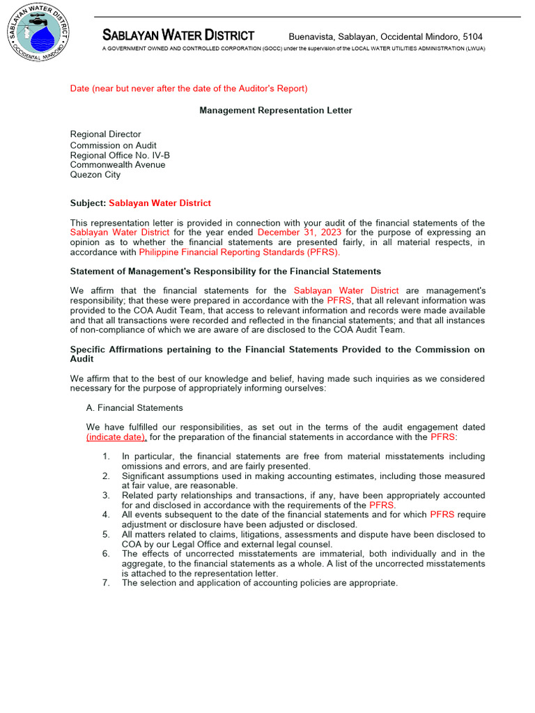 Management Representation Letter PDF