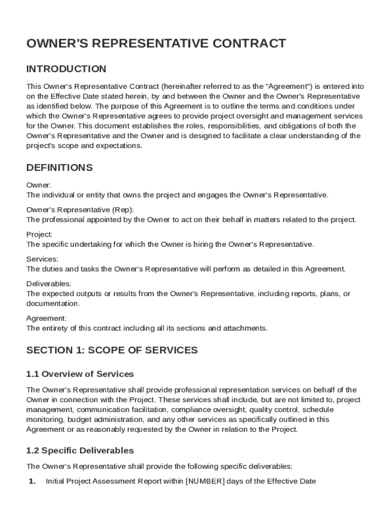 Owner #39 S Representative Contract Template: Fill out sign online DocHub