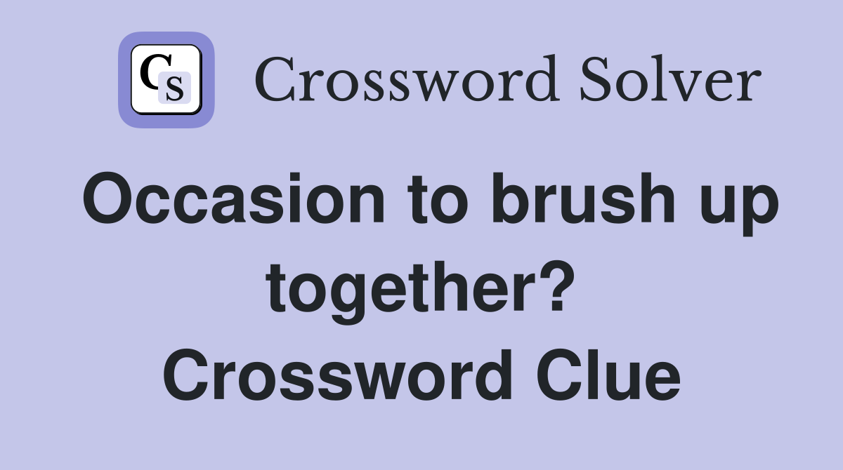 Occasion to brush up together? Crossword Clue Answers Crossword Solver