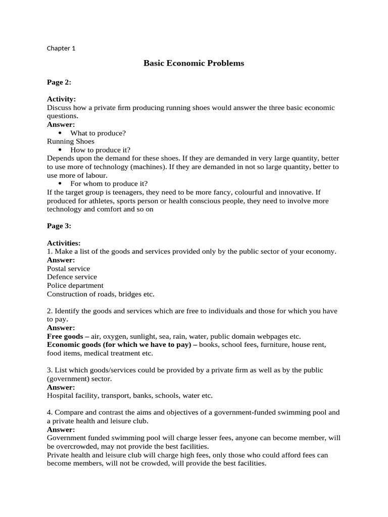 IGCSE Chapter 1 Answers of Activities PDF Goods Economies