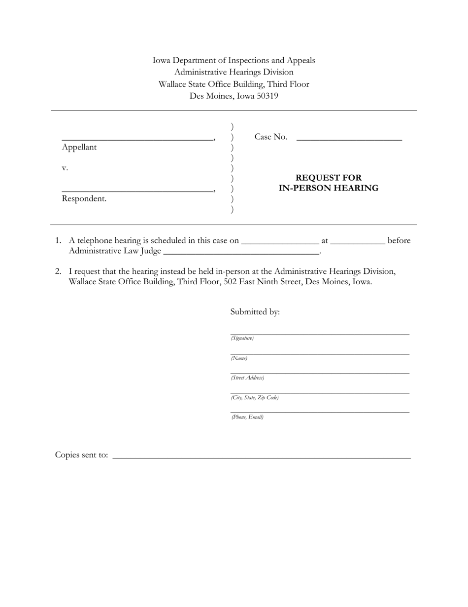Iowa Request for in Person Hearing Fill Out Sign Online and Download
