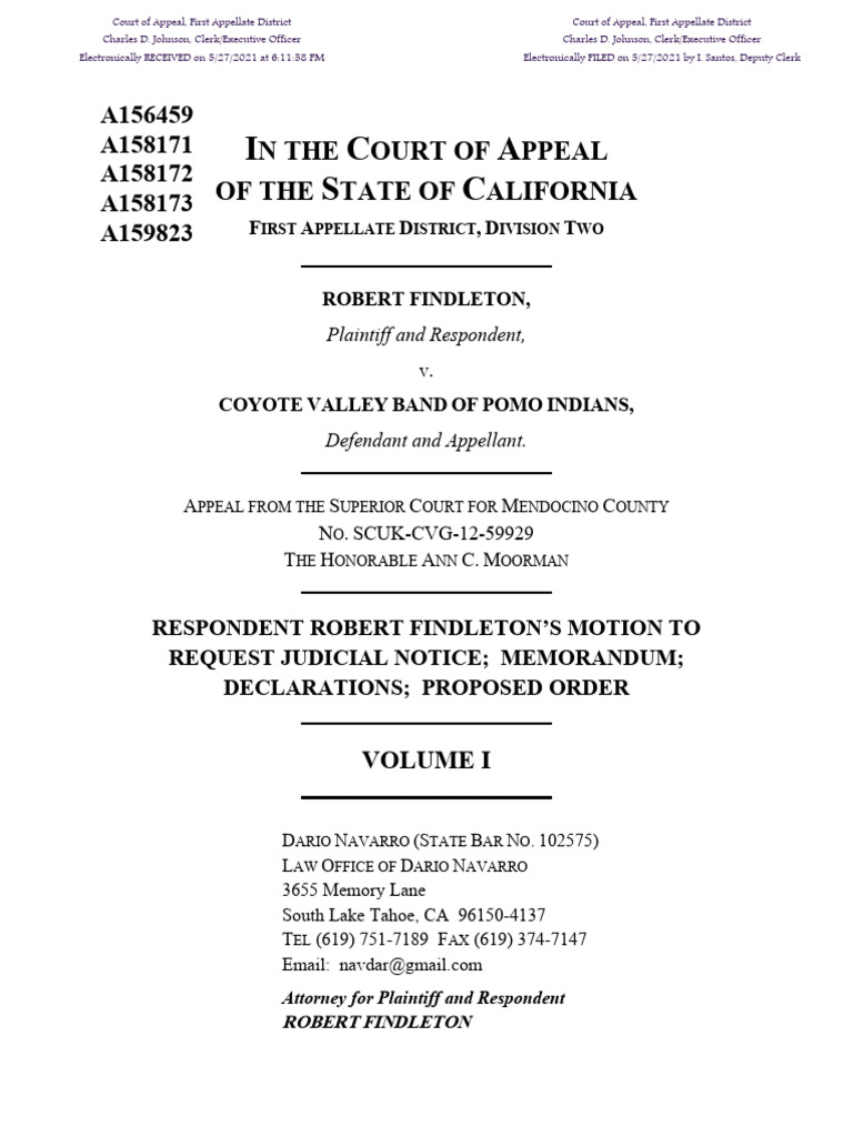 FILE STAMPED VOL 01 A159823 Respondent Findleton Motion To Request