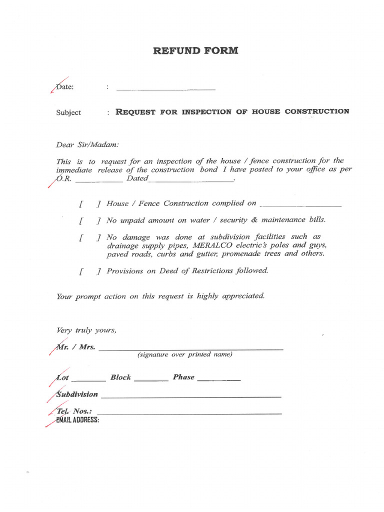 Refund Request Form PDF