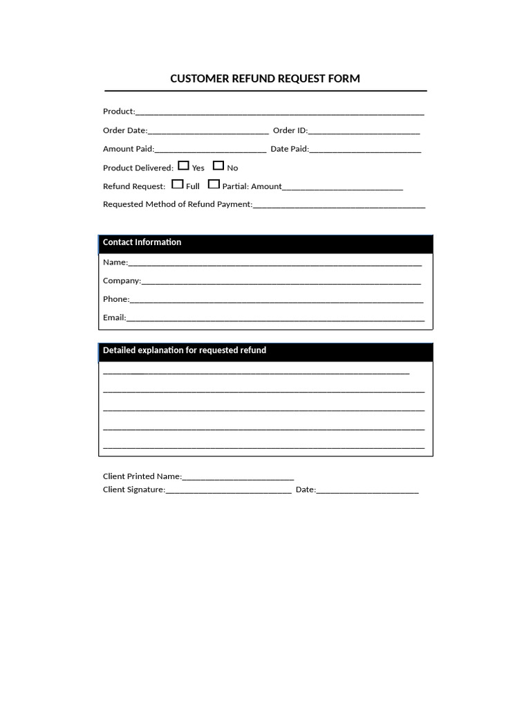 Customer Refund Request Form PDF