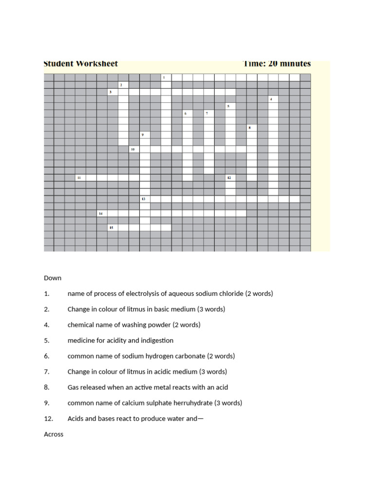 Acids Bases and Salts Crossword Puzzle Worksheets Library