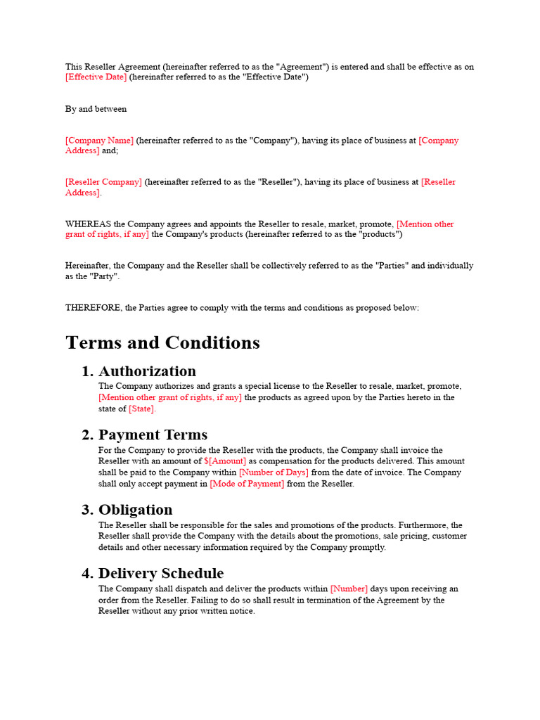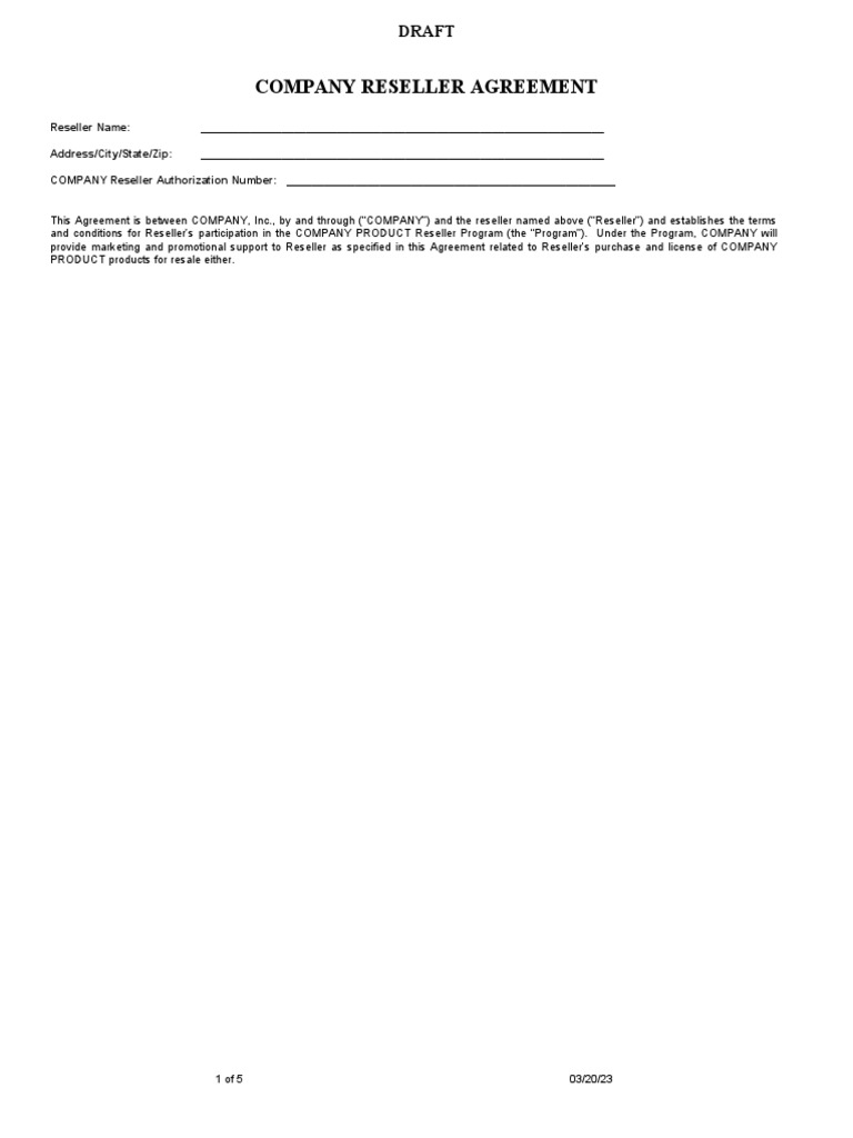 Standard Reseller Agreement Template in Word PDF Google Docs