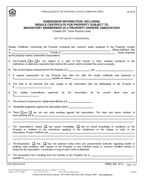 TREC Resale Certificate for Mandatory HOA Property PDF Fee Ownership