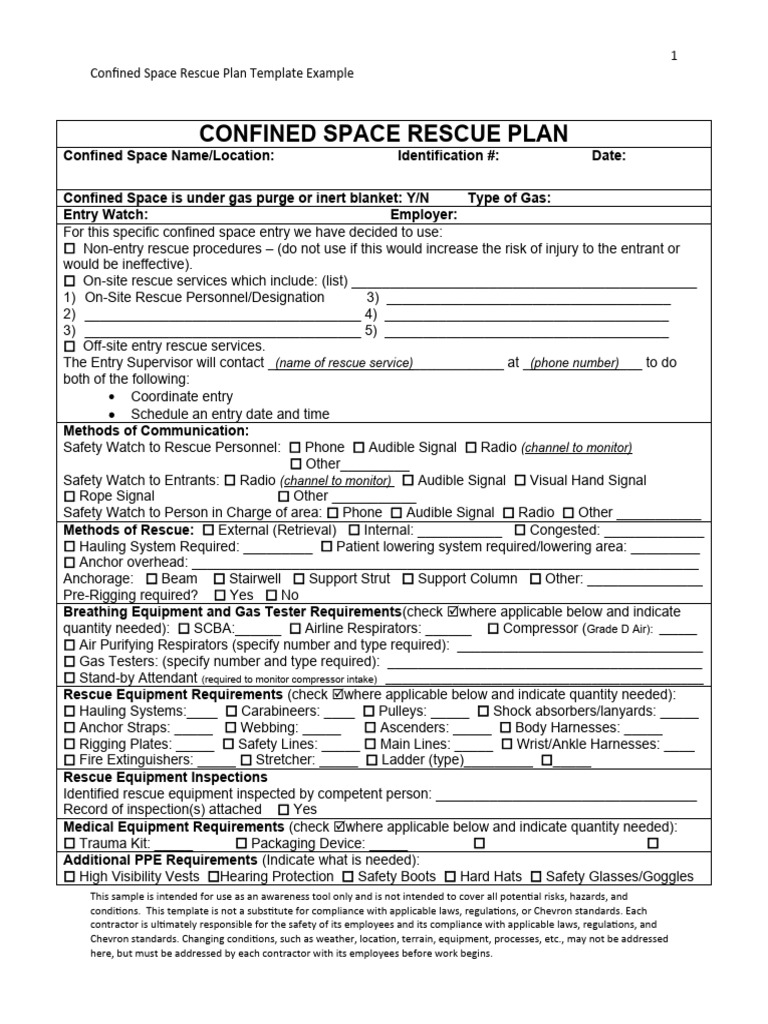 Template Confined Space Rescue Plan American OHSA The Safety Doc Shop