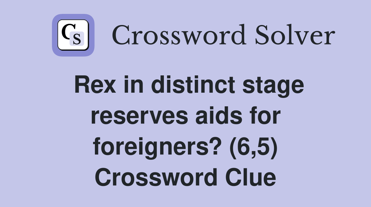 Rex in distinct stage reserves aids for foreigners? (6 5) Crossword