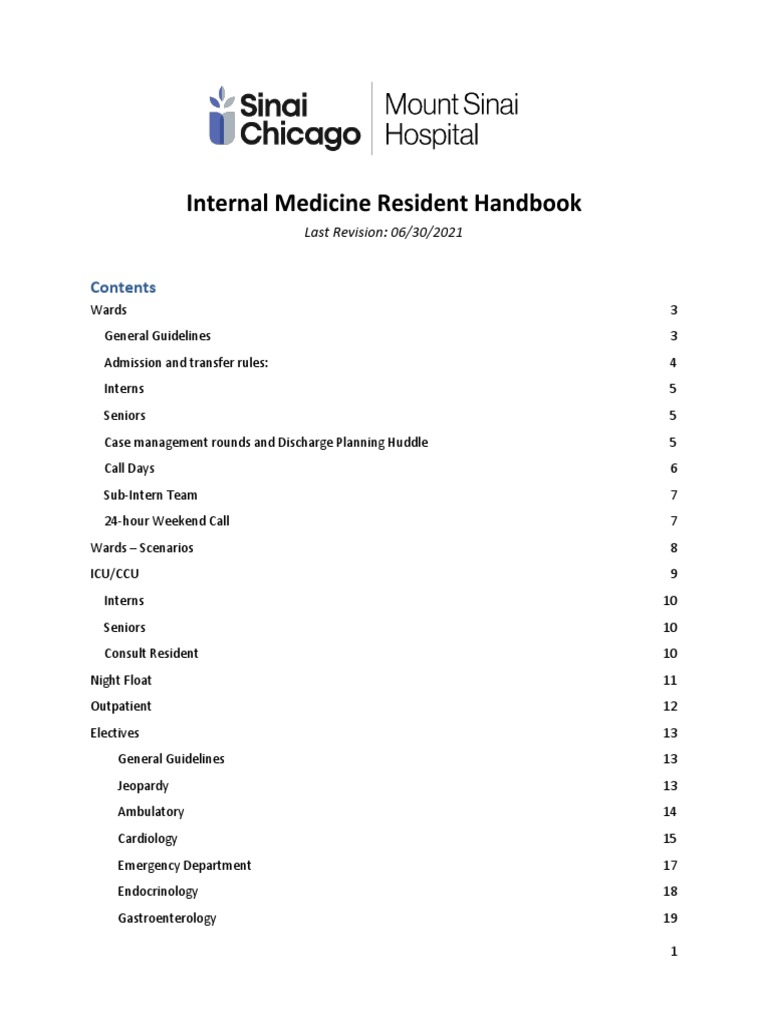 Resident Handbook 06 30 21 PDF Intensive Care Unit Patient