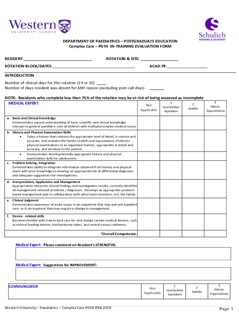 Fillable Online Resident Handbook Schulich School of Medicine