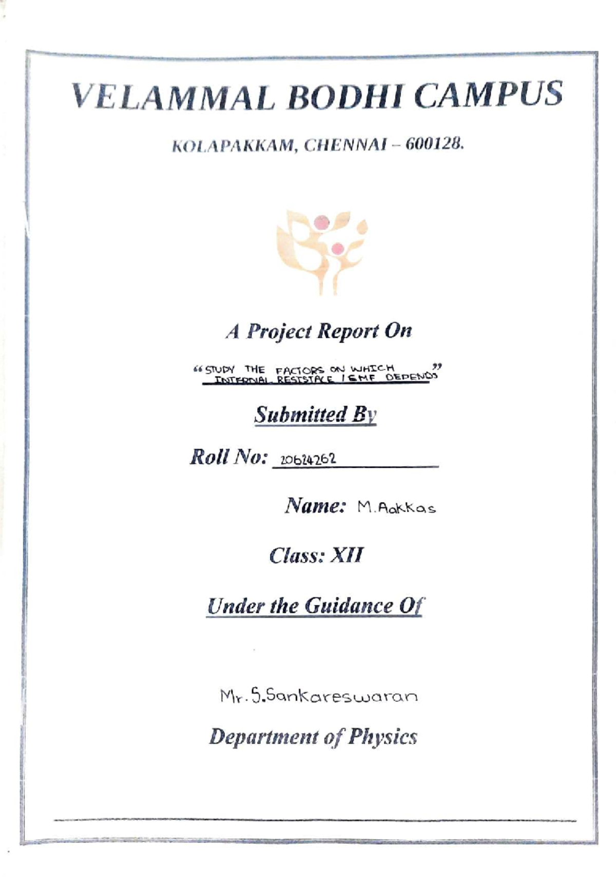 XII Project Report on Internal Resistance Factors Physics Practical