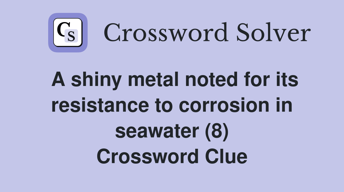 A shiny metal noted for its resistance to corrosion in seawater (8