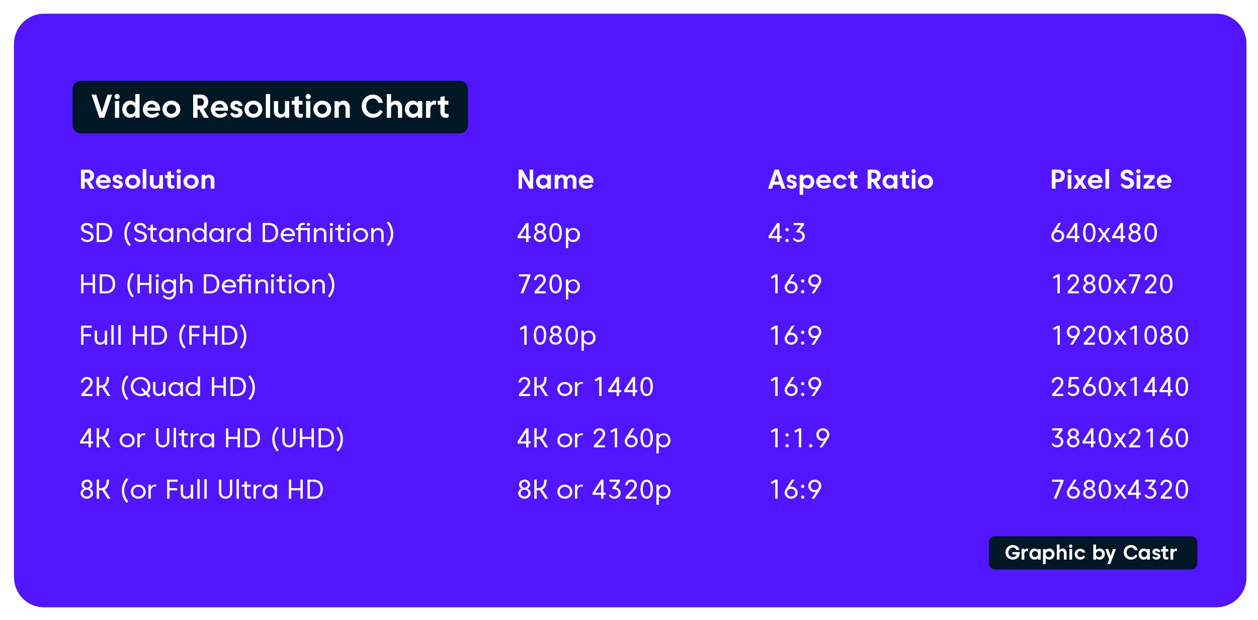 Screen Resolution Chart