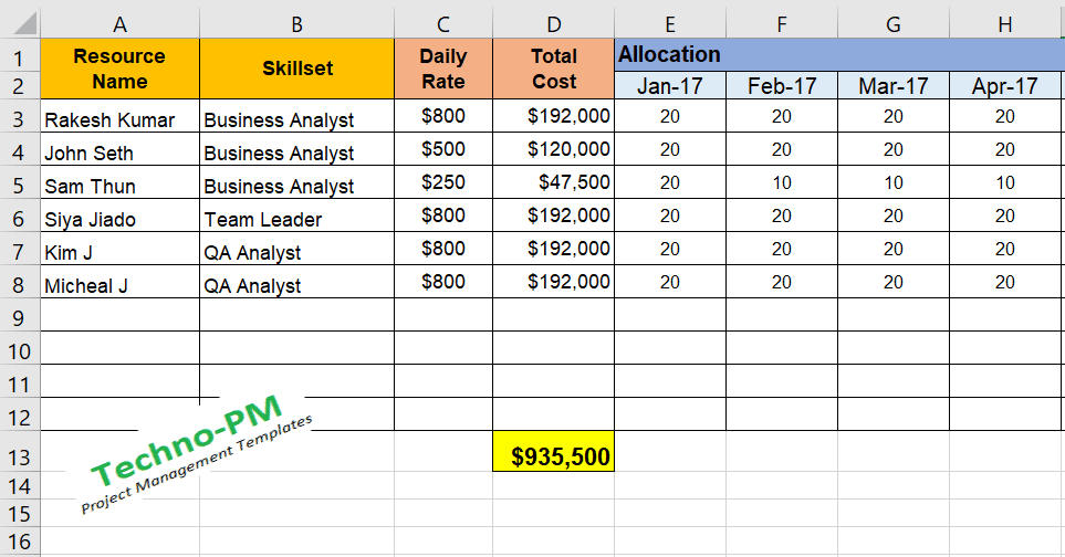 Resource Allocation Template in Excel