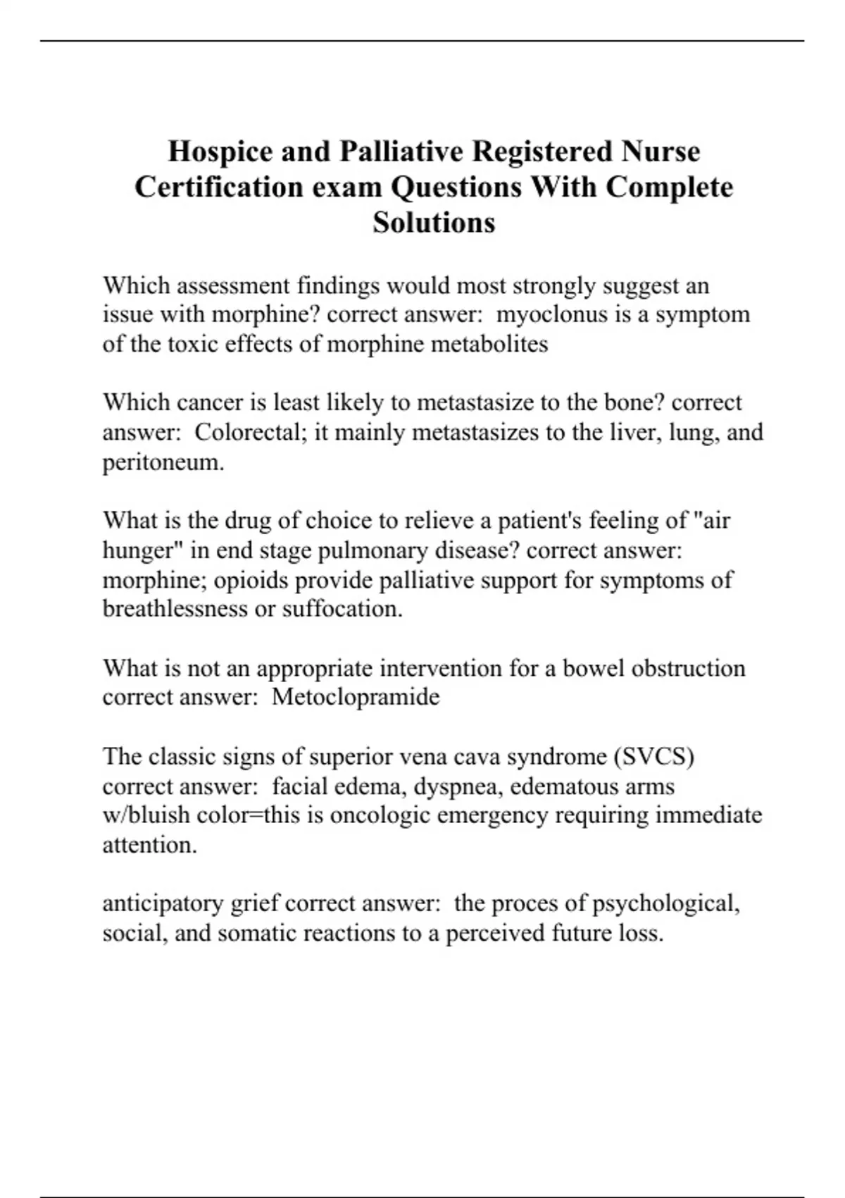 Hospice and Palliative Registered Nurse Certification exam Questions