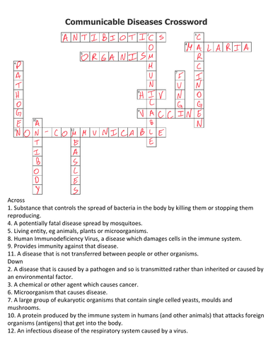 Communicable Diseases WordSearch and Crossword Infection and Response